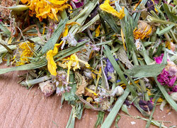 Frische Kräuter und Blätter sorgen für Abwechslung auf dem Speisezettel von Farbratten. Idealerweise fütterst du diese täglich, frisch und in abwechselnden Sorten. Medizinisch wirksame Kräuter und Blätter dürfen jedoch nur in kleinen Mengen gefüttert werden. Für den Fall, dass keine frisch gepflückten, verträglichen und unbehandelten Kräuter und Blätter zur Hand sind und/ oder die Auswahl aufgrund der Jahreszeit stark begrenzt ist, bieten diese artgerechte Kräuter- und Blättermischung sowie die einzelnen Trockenkräuter- und blättersorten eine Alternative zur Überbrückung des Engpasses und zur Erweiterung des Speiseplans. Selbstverständlich wurden alle Produkte schonend getrocknet und sind frei von Zusatz-, Farb-, Füll- und Konservierungsstoffen.